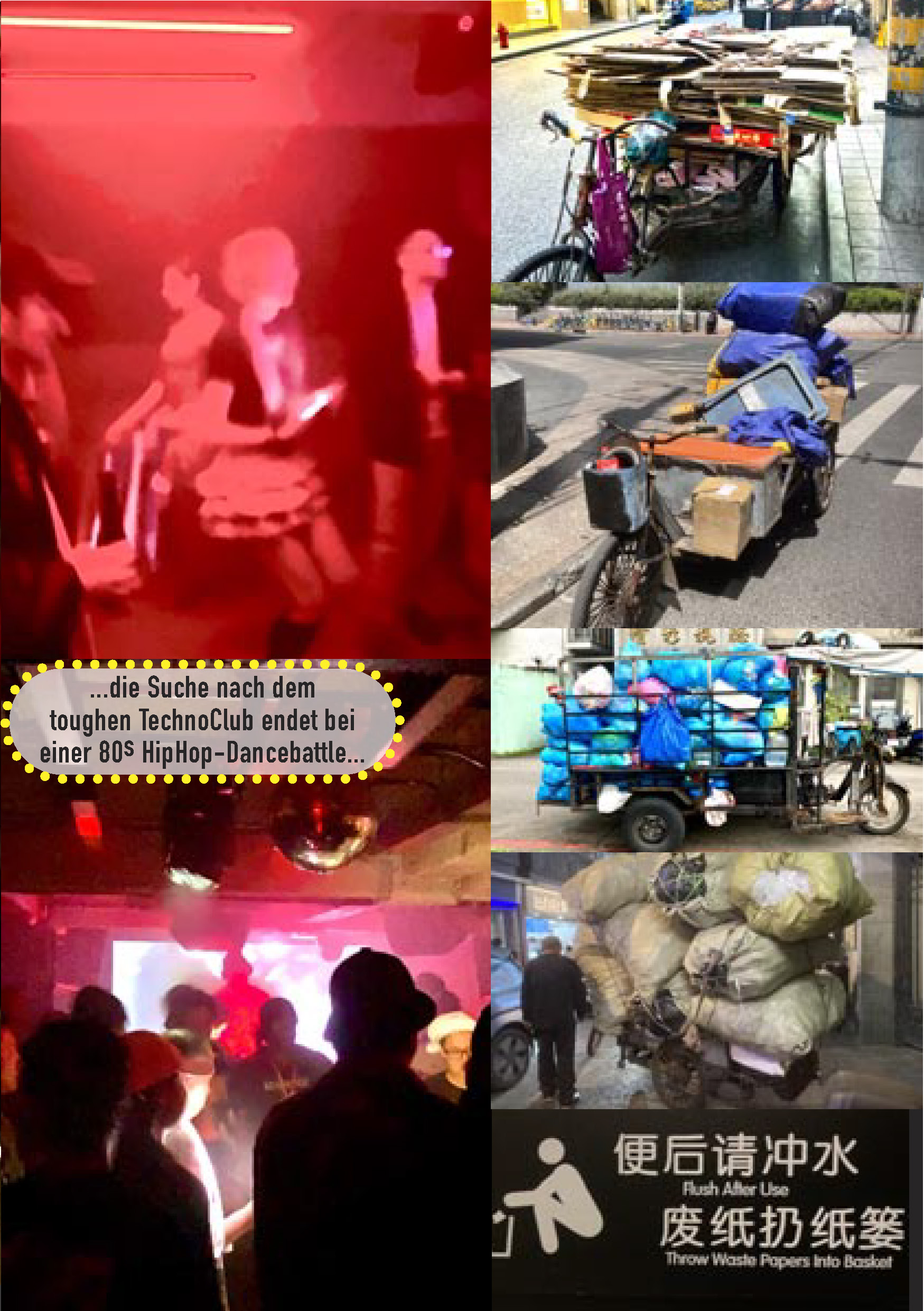 In Taipeh (aber auch Shanghai) sieht man häufig Menschen, die Karton und andere Wertstoffe sammeln. Das liegt vor allem an Taiwans sehr gut organisiertem Recyclingsystem. Die Regierung hat Programme wie „Pay As You Throw“ eingeführt: Für Restmüll müssen spezielle Müllsäcke gekauft werden, während Recycling kostenlos ist. Das motiviert viele Menschen, Materialien wie Karton zu sammeln und abzugeben, um ein kleines Einkommen zu erzielen. Dabei handelt es sich nicht nur um obdachlose Menschen.