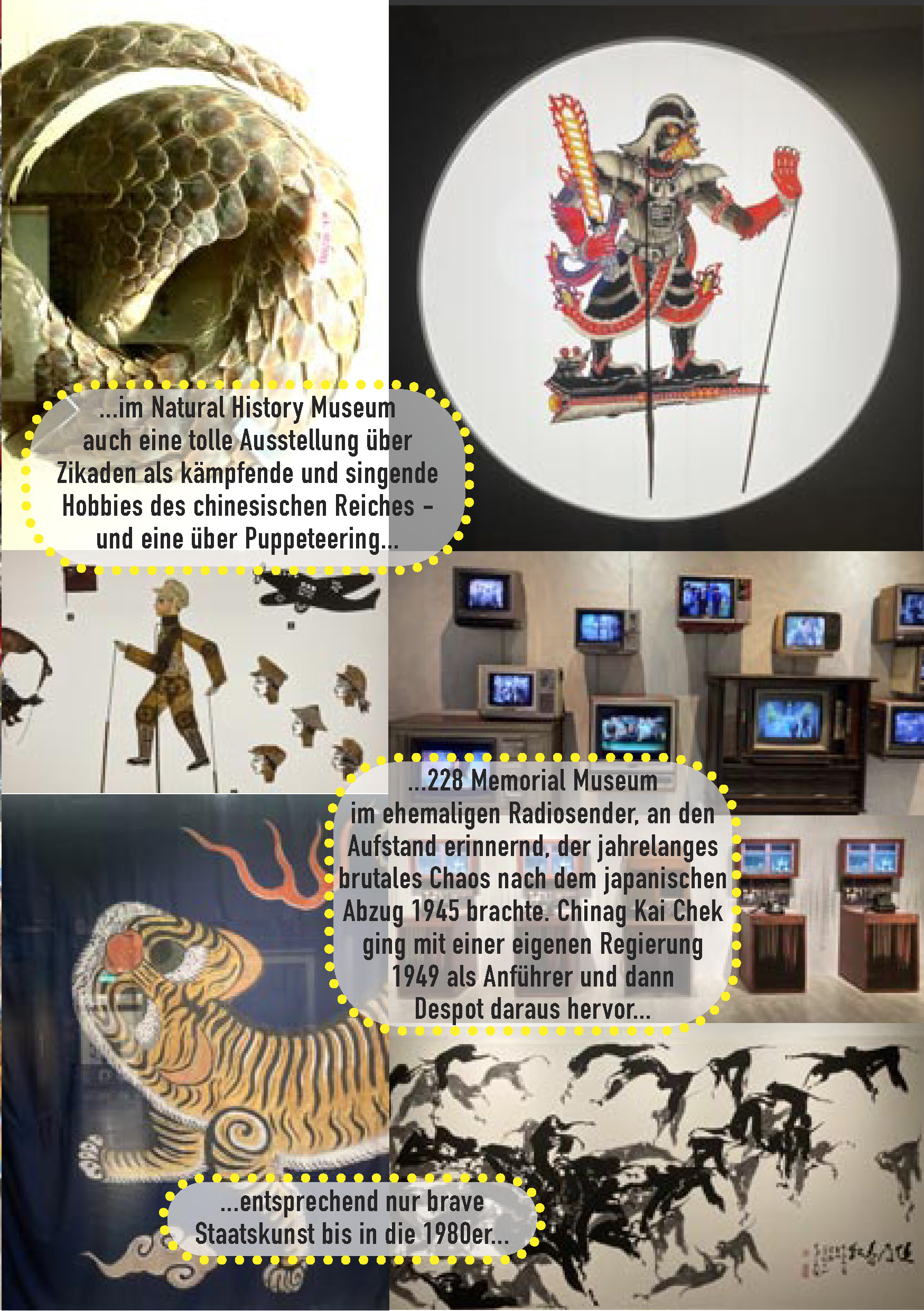 ..die japanischen Opressoren waren so radikal in der Ausrottung von Stammestypischem, dass das Aytal-Museum in Nan’ao tatsächlich nur Webstühle & Holzbautechniken zeigt. Die benachbarten Amis konnten mit Hilfe der Alten noch ein tolles Buch über Rituale und Pflanzenkräfte zusammenstellen…